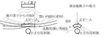ビームに端が有ると、そこから音は広がります。小生はその原理を示唆する為、BED(Beam Edge Diffusion/Diffraction)と呼んでいます。回折とBEDは実質同義です。回折は物を迂回して、音が回り込む事を言いますが、物が無くてもビームに端があれば、音は回り込みます。が、物が無くても回折することを強調する為、BEDと言っています。回折と異なる点は、逆位相のBEDも発生する事です。元々の回折でも逆位相の波が発生しますが、余り認識されてこなかった様です。